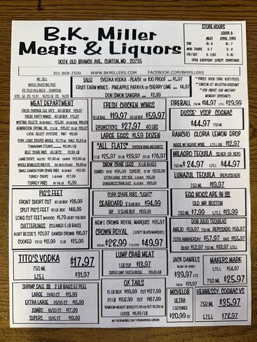 In 1913, B.K. Miller Sr. opened his General Store just across the corner from where B. K. Miller Meats and Liquors is now located. Through time, the store has sold groceries, fine meats, clothing, brick, block, cement, steel products, coal, ice melting chemicals, beer, wine, liquor, soft drinks, juices, coffee, lottery, and at one time was a beer distributor. The store now retails a great selection of beer, wine, liquor, as well as meat and seafood items that can be bought in bulk or in individual packages.