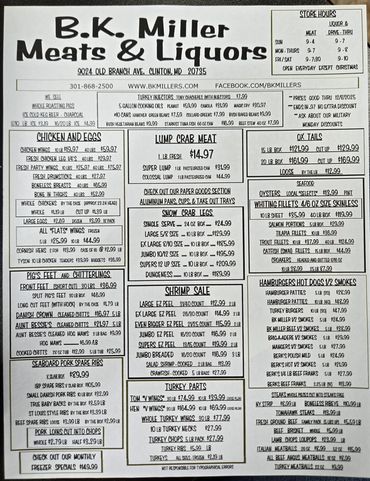 B.K. Miller Meats and Liquors is an independent business and does not charge a membership fee. We still bag your order and assist you to your car when needed. We do our best to get you through check out as fast and accurate as possible and there is a drive through window for beer wine and liquor purchases. Our management team can assist you with your event and party planning, and we are a one stop shop for family picnics.